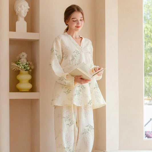 Organic Cotton Muslin Wrap Maternity Pajama Set- Bamboo