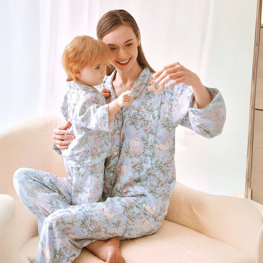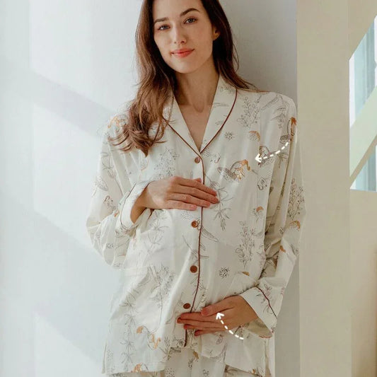 Organic Cotton Muslin Warm Maternity Pajama- Blue Dream Garden