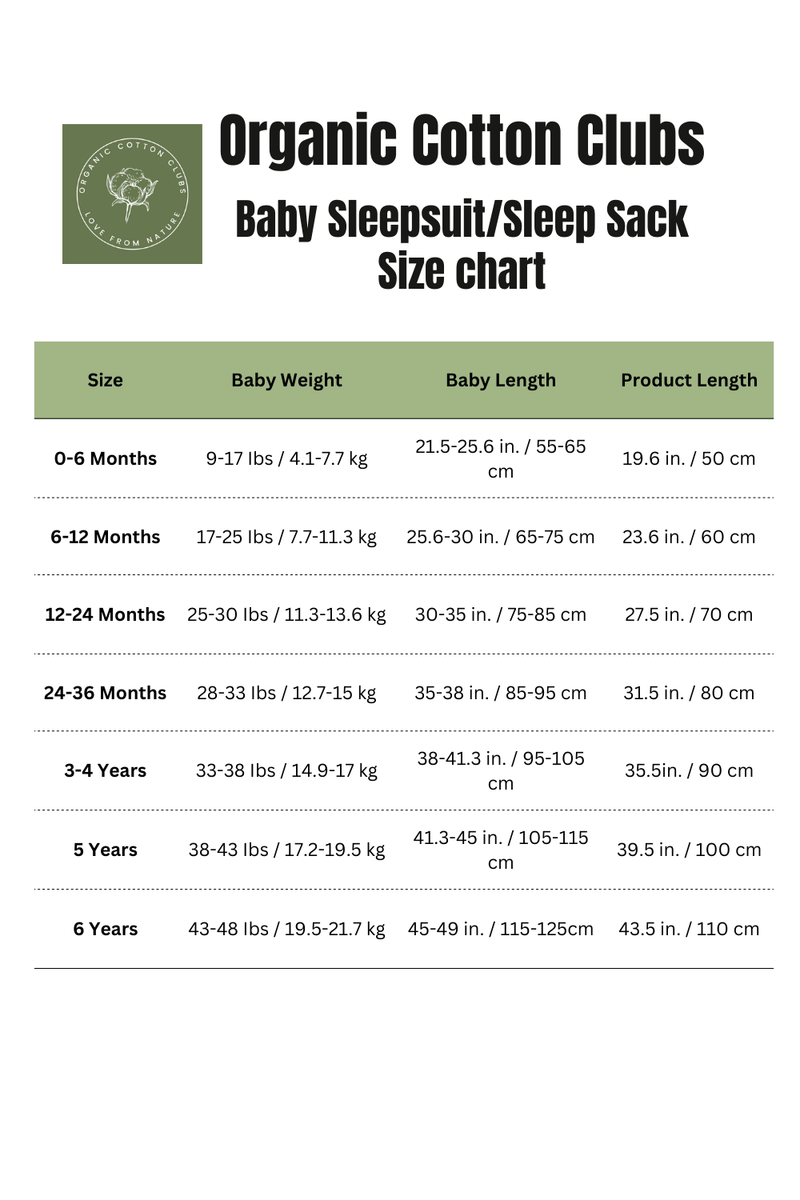 Organic Cotton Clubs' baby sleepsuits are made with premium bamboo and organic cotton, which is super soft & luxuriously comfy for toddlers, infants, newborns, and youngsters. To provide ultimate comfort for baby's peaceful night's rest.