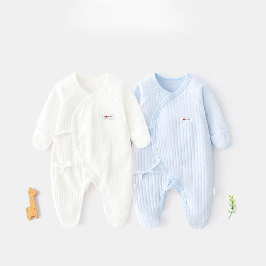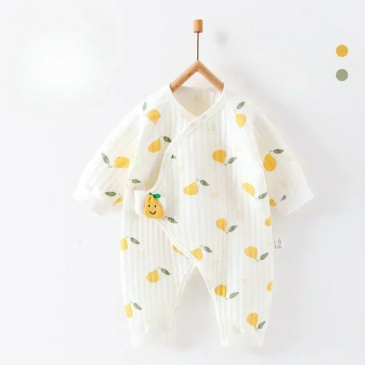 100% Cotton Warm Long Sleeve Romper with Velcro Closure - Green Leave