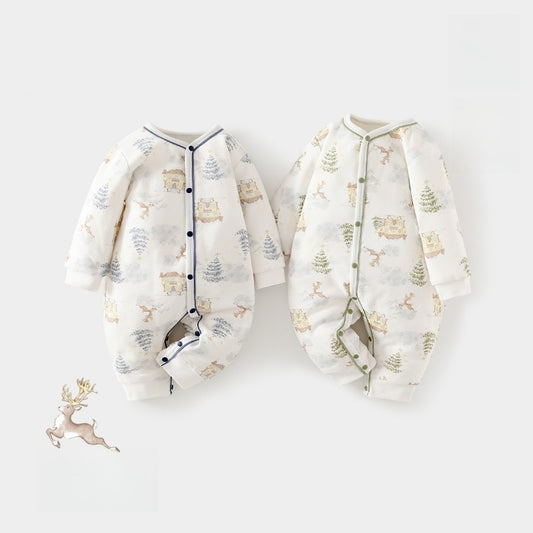 100% Cotton Quilted Long Sleeve Snap-Up Romper - Blue Tree