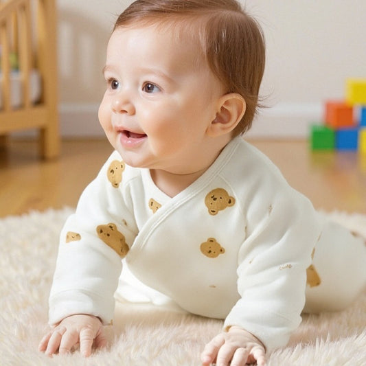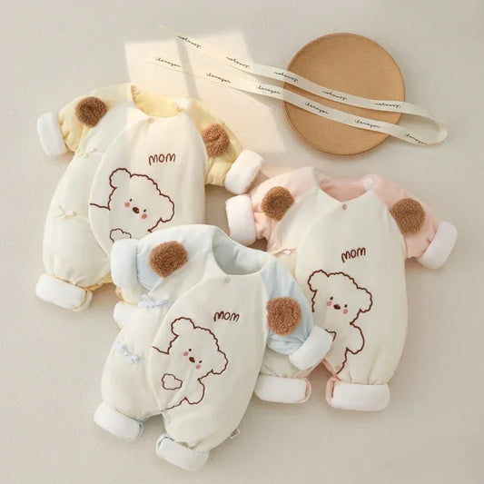 100% Cotton Extra Warm Long Sleeve Quilted Romper - Blue Bear