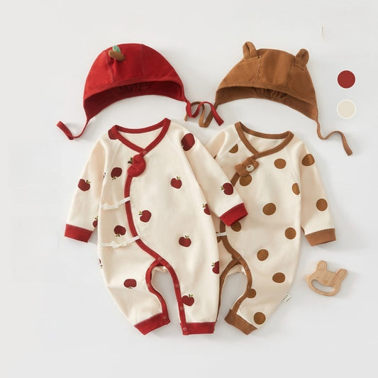 100% Cotton Long-Sleeve Kimono Romper - Red Apple