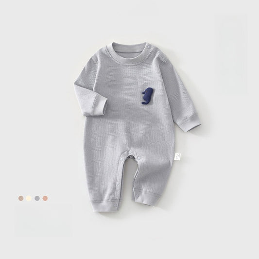 100% Cotton Snap-up Long-Sleeve Romper - Blue Dolphin