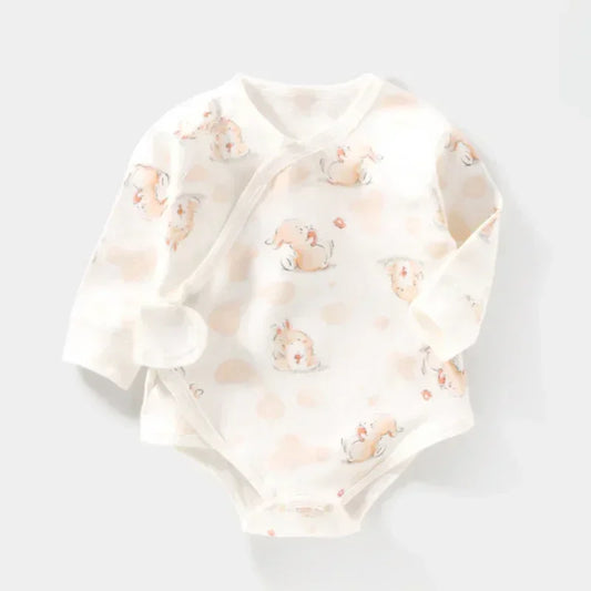 100% Cotton Long Sleeve Kimono Bodysuit - White