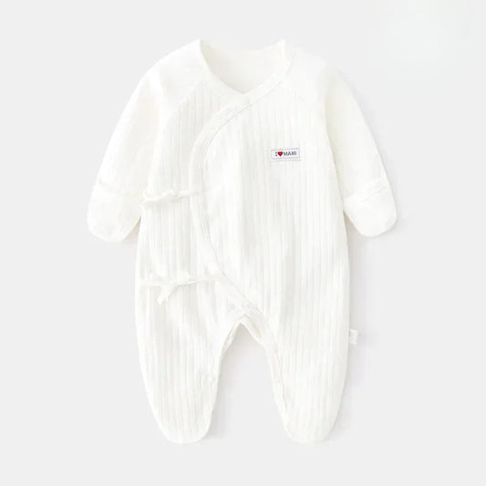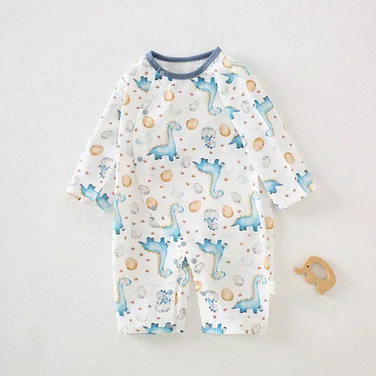 100% Cotton Long Sleeve Snap-Up Romper - Bowknot with Bird
