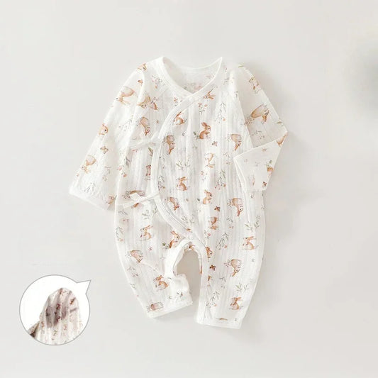 100% Cotton Long Sleeve Kimono Romper - Bunny & Blue Flowers