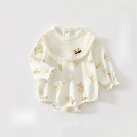 100% Cotton Long Sleeve Snap-Up Romper - Bowknot with Flowers
