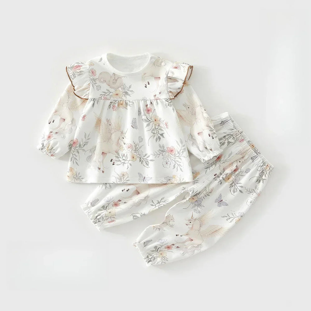 100% Cotton Long Sleeve Top & Pants Set - Fairy Garden