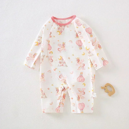 Cotton & Bamboo Muslin Long Sleeve Romper - Unicorn