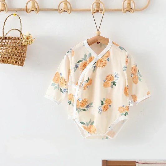 100% Cotton Long Sleeve Kimono Romper - Fruits & Leaves
