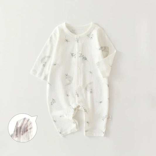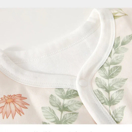 100% Cotton Long Sleeve Snap-Up Romper - Leaves