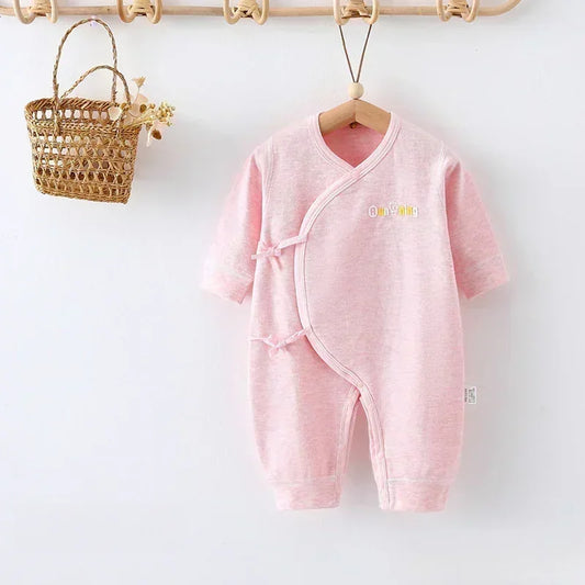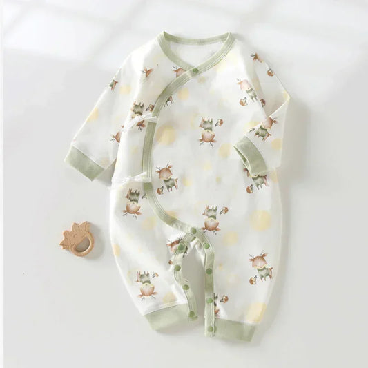 100% Cotton Warm Long Sleeve Romper with Velcro Closure - Green Leave