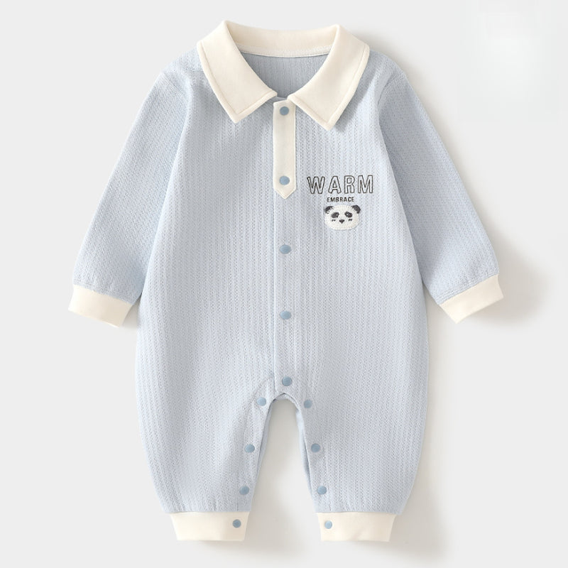 100% Cotton Long Sleeve Romper with Velcro Closure - Blue Panda