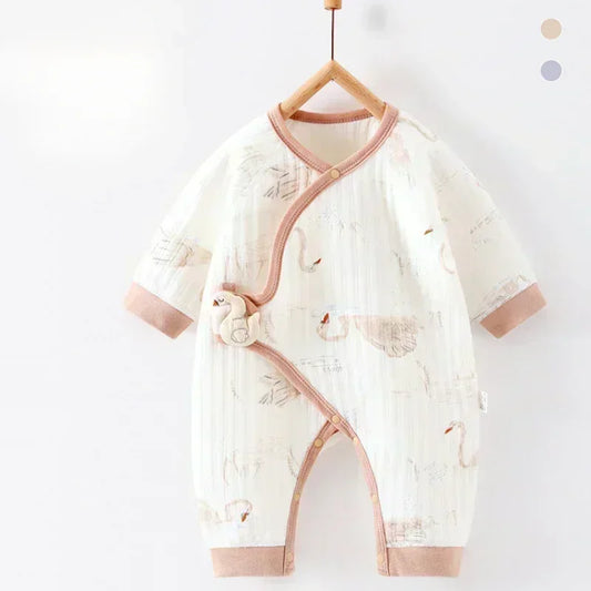 100% Cotton Warm Long Sleeve Romper with Velcro Closure - Rihnocero