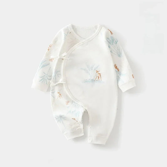 100% Cotton Long-Sleeve Kimono Romper - Blue Deer