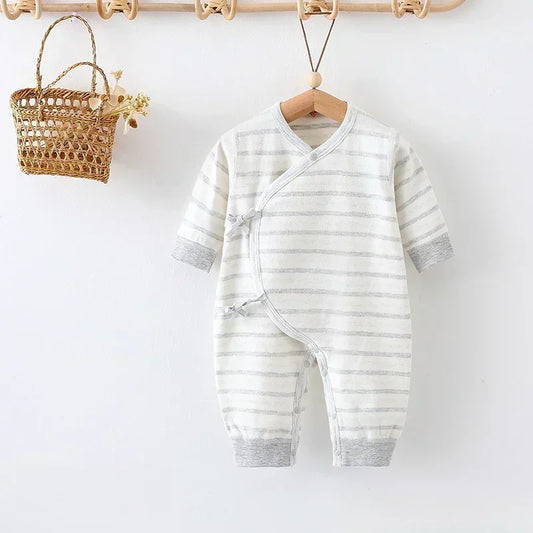 Cotton Long Sleeve Kimono Romper - Gray Stripe