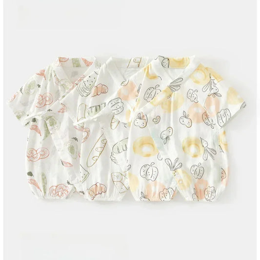 Cotton & Bamboo Muslin Short Sleeve Kimono Romper - Breads