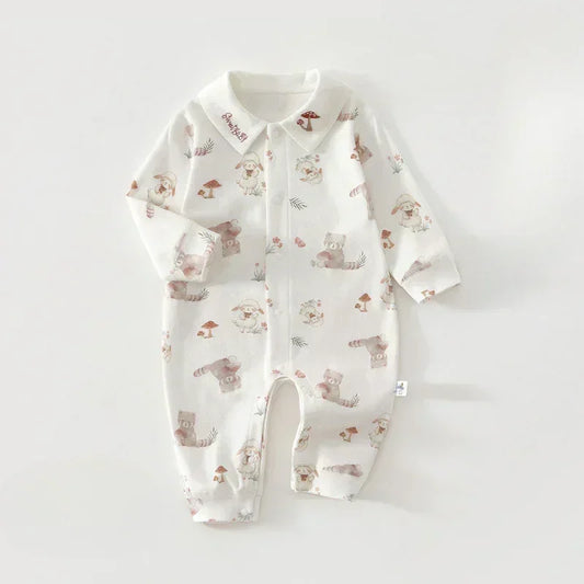 100% Cotton Long Sleeve Snap-Up Romper - Little Panda