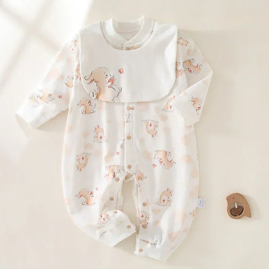 100% Cotton Long Sleeve Romper with Bib - Bunny with Bicycle