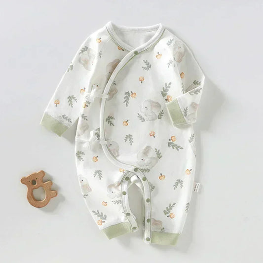 100% Cotton Long Sleeve Kimono Romper - Green Elephant