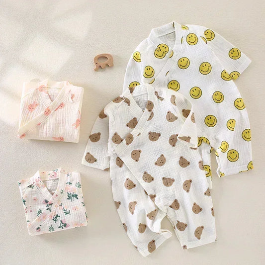 100% Cotton Long Sleeve Kimono Romper - Bear & Heart