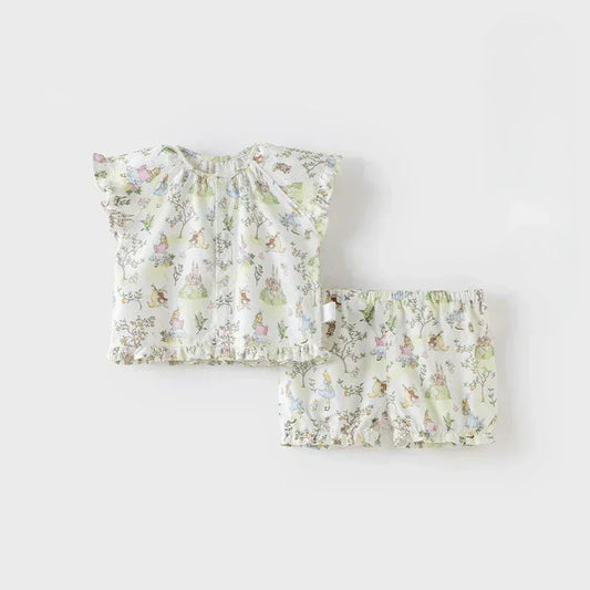 Cotton Short-Sleeve Top & Pants Set - Deer & Bunny Garden