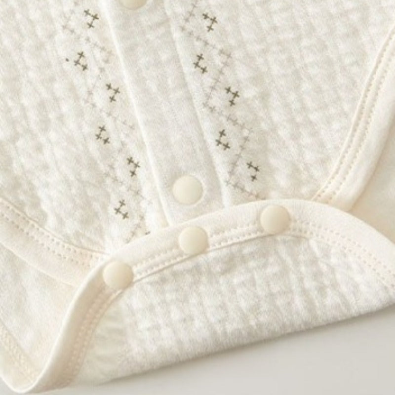 Changing diapers couldn't be simpler thanks to the convenient bottom snaps. You won’t need to fully undress your baby — just unfasten the snaps at the bottom for quick and stress-free changes, whether you’re at home or on the go.