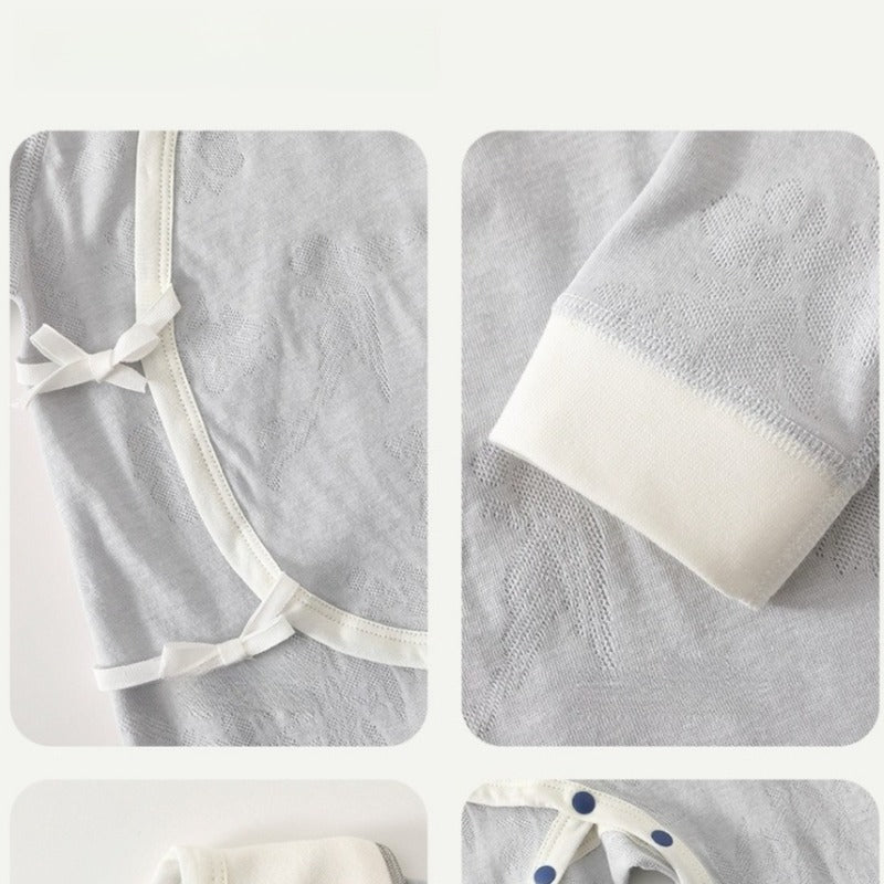 - Kimono / Wrap Style: This style opens completely at the front and is secured with snaps. It's perfect for newborns as you don't have to pull anything over their head or umbilical cord stump. It also allows for easy layering and is ideal for checking on medical devices or monitors.
