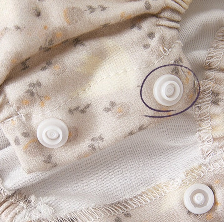 Changing diapers couldn't be simpler thanks to the convenient bottom snaps. You won’t need to fully undress your baby — just unfasten the snaps at the bottom for quick and stress-free changes, whether you’re at home or on the go.