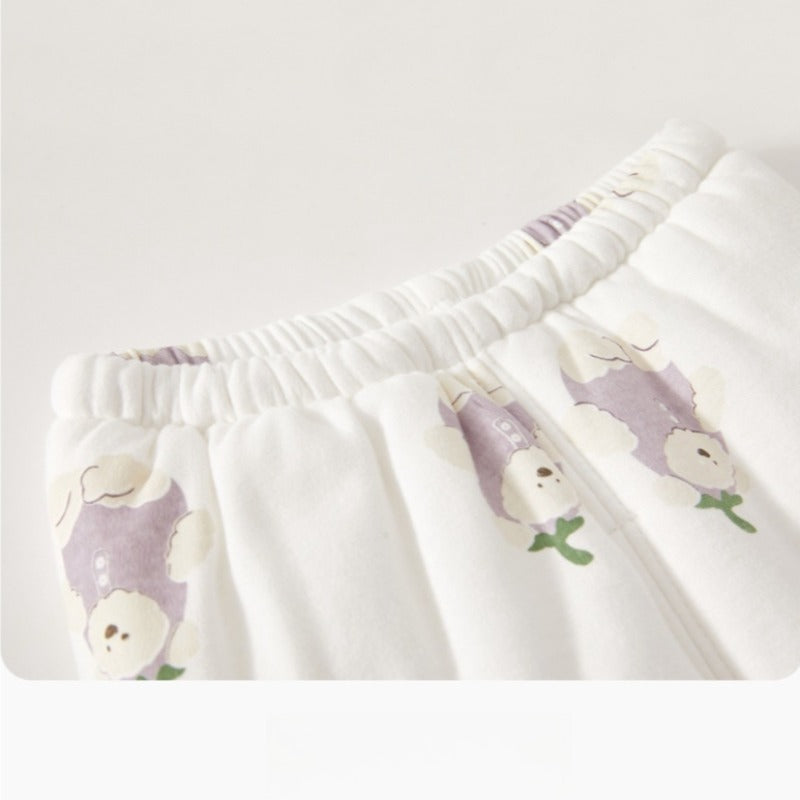 100% Cotton Long Sleeve Quilted Top & Pants Set - Yellow Lovely Bear
