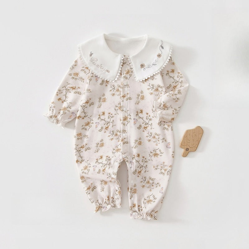 100% Cotton Snap-up Long-Sleeve Romper - Pink Dream Garden