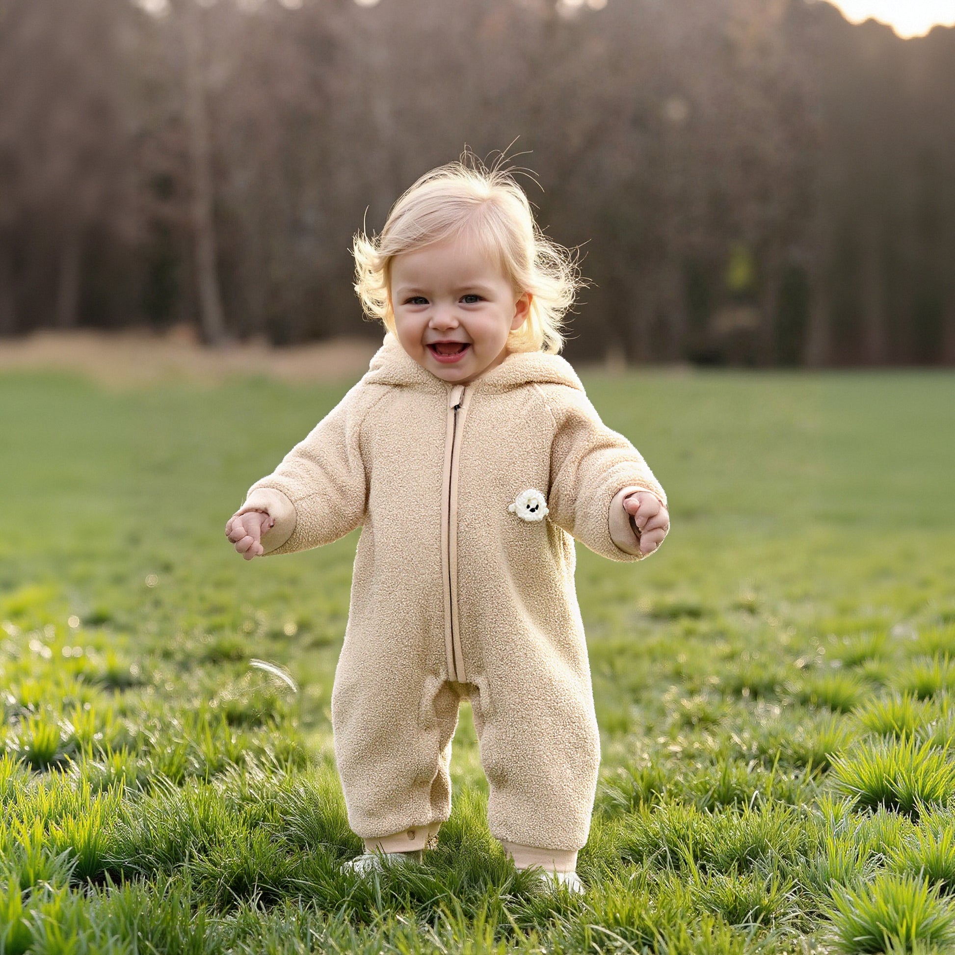 Quilted Microfleece Zip-up Hooded Romper - Beige Sheep